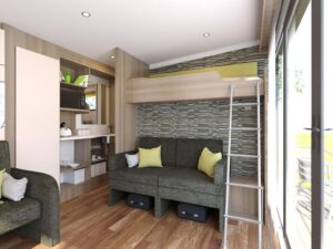 It is a 2018, 4 berth Model complete with built in decking and skirting. It is fully double glazed and electric heated. It has appliances including a mini fridge, microwave, kettle, and toaster.